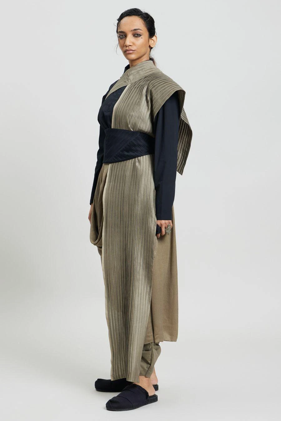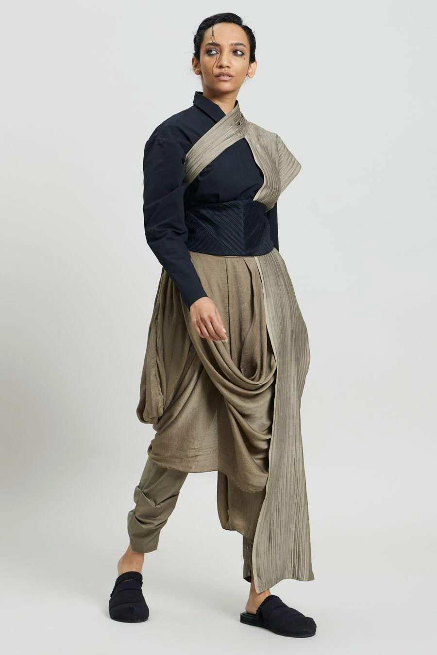 Indulge in the luxurious comfort of these Mud Green Draped Pants, crafted with a delicate balance of elegance and ease. With their graceful silhouette and supple fabric, these pants exude effortless style, perfect for any occasion.