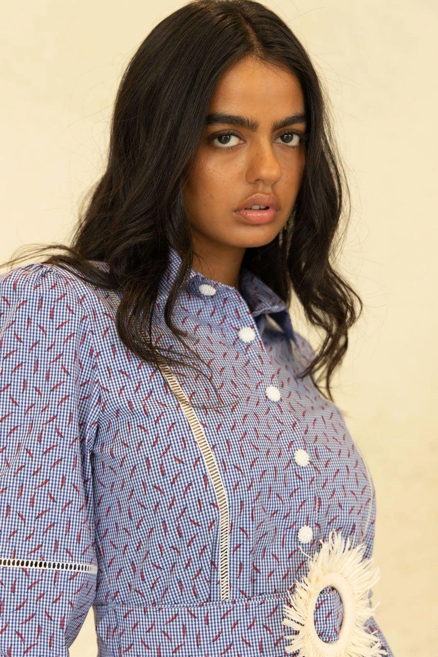 Whether you’re looking to make a bold fashion statement or simply want to add a touch of everyday glamour to your ensemble, this dress is the epitome of sophistication & style. Crafted in cotton, this dress features delicate lace accents.