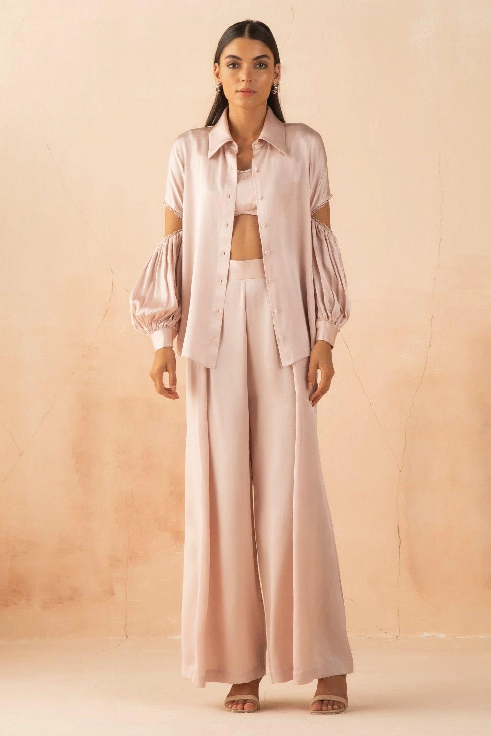 These 100% Italian silk trousers in a dusty rose palette exudes luxury & elegance. Pair them with a coordinating silk shirt or a cropped sweater, for the it-look.