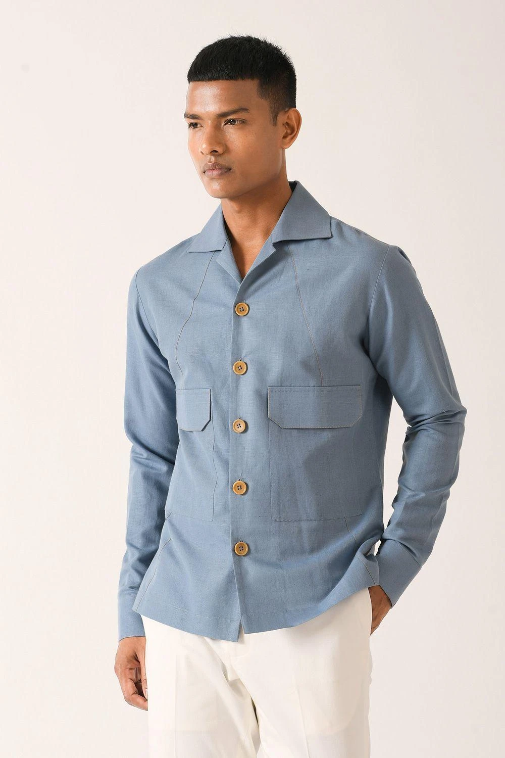 This capri shirt fetches a stylish look with a sense of ease. It is cut in cotton linen and features flap pockets & stitch lines. You can style it with a pair of linen trousers.