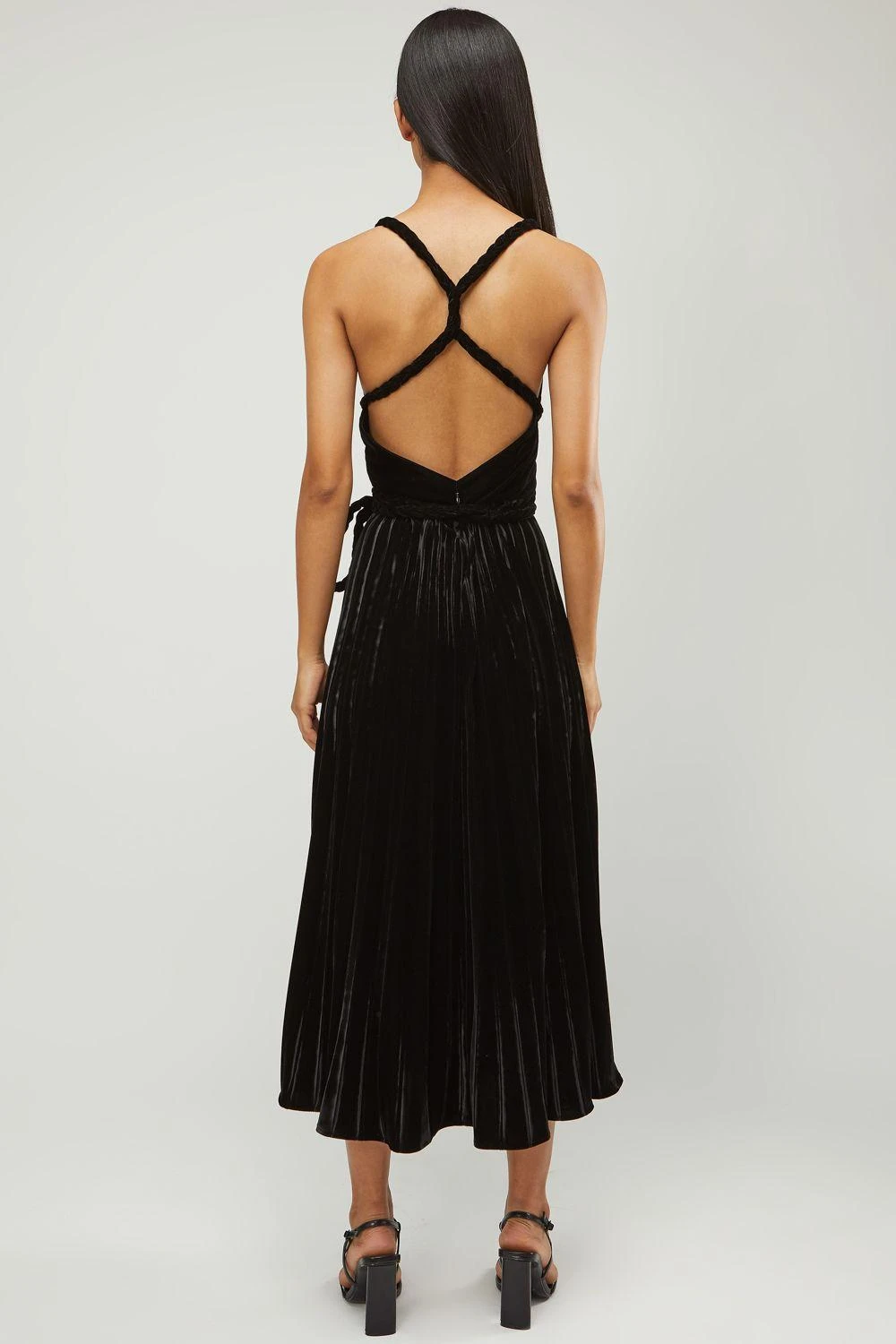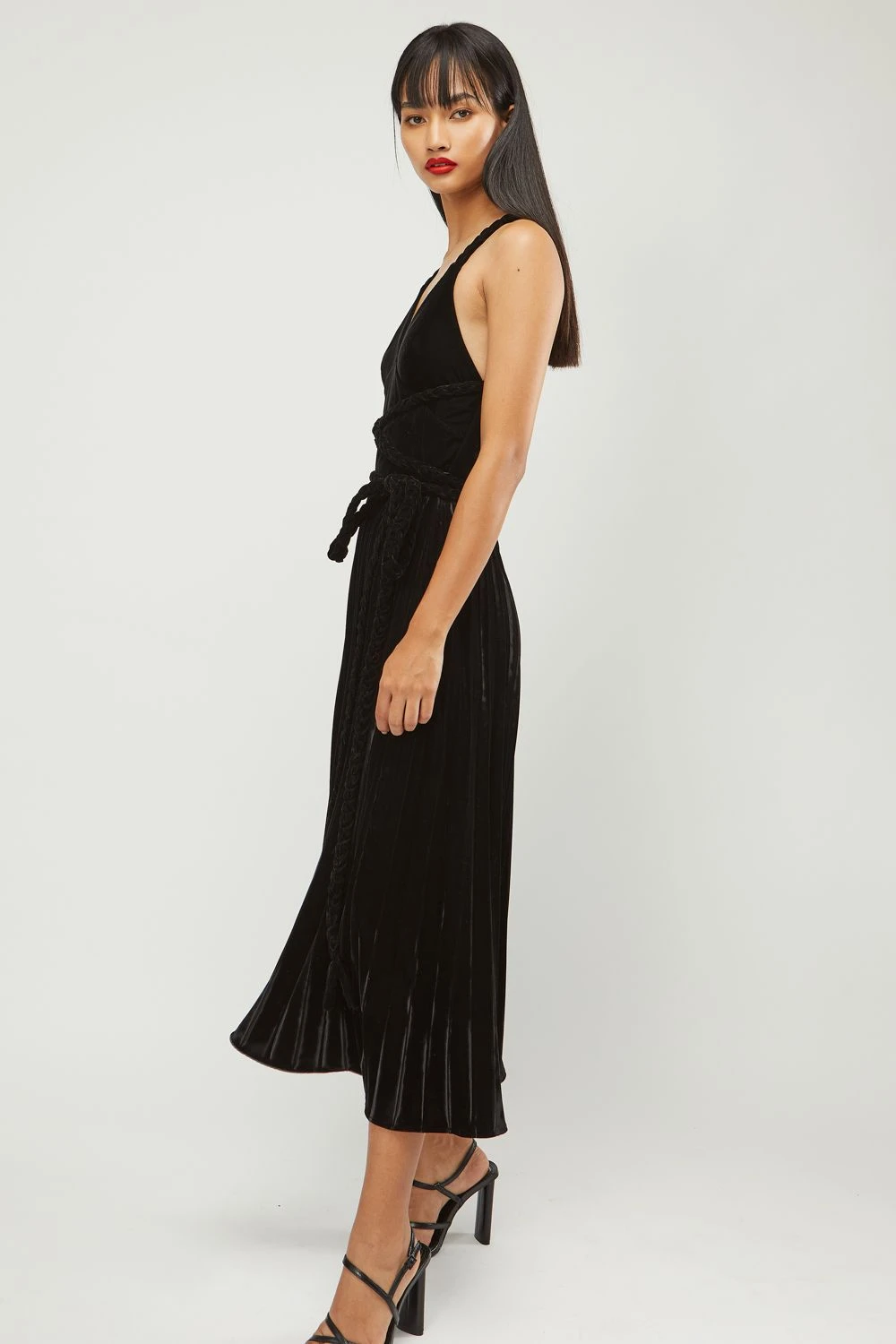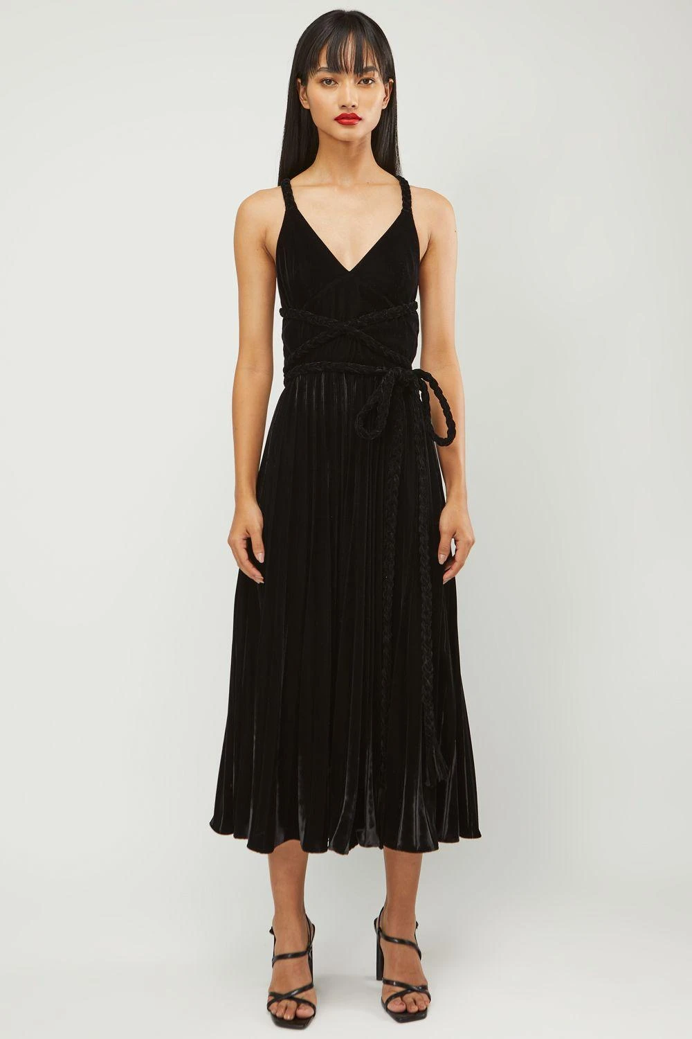 You can count on Gauri & Nainika’s black tea length dress for the best in minimalist eveningwear that feels sleek & modern. Crafted in velvet, this dress features a V-neck & a braided belt. Style it with statement earrings to complete the look.