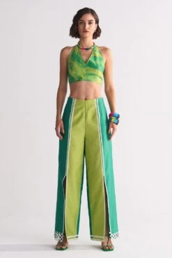 Indulge in comfort and style with these elasticated slit applique straight pants, a chic addition to your wardrobe. Effortlessly versatile, these pants elevate your look with a touch of understated elegance.