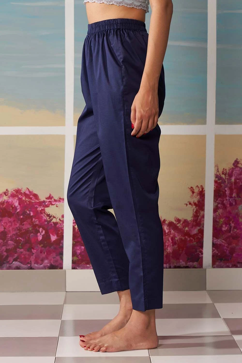 These classic blue tapered pants can be styled with a loose tunic or kurta to create an effortless summer look. The tapered pants & elastic waist are both comfortable & flattering.