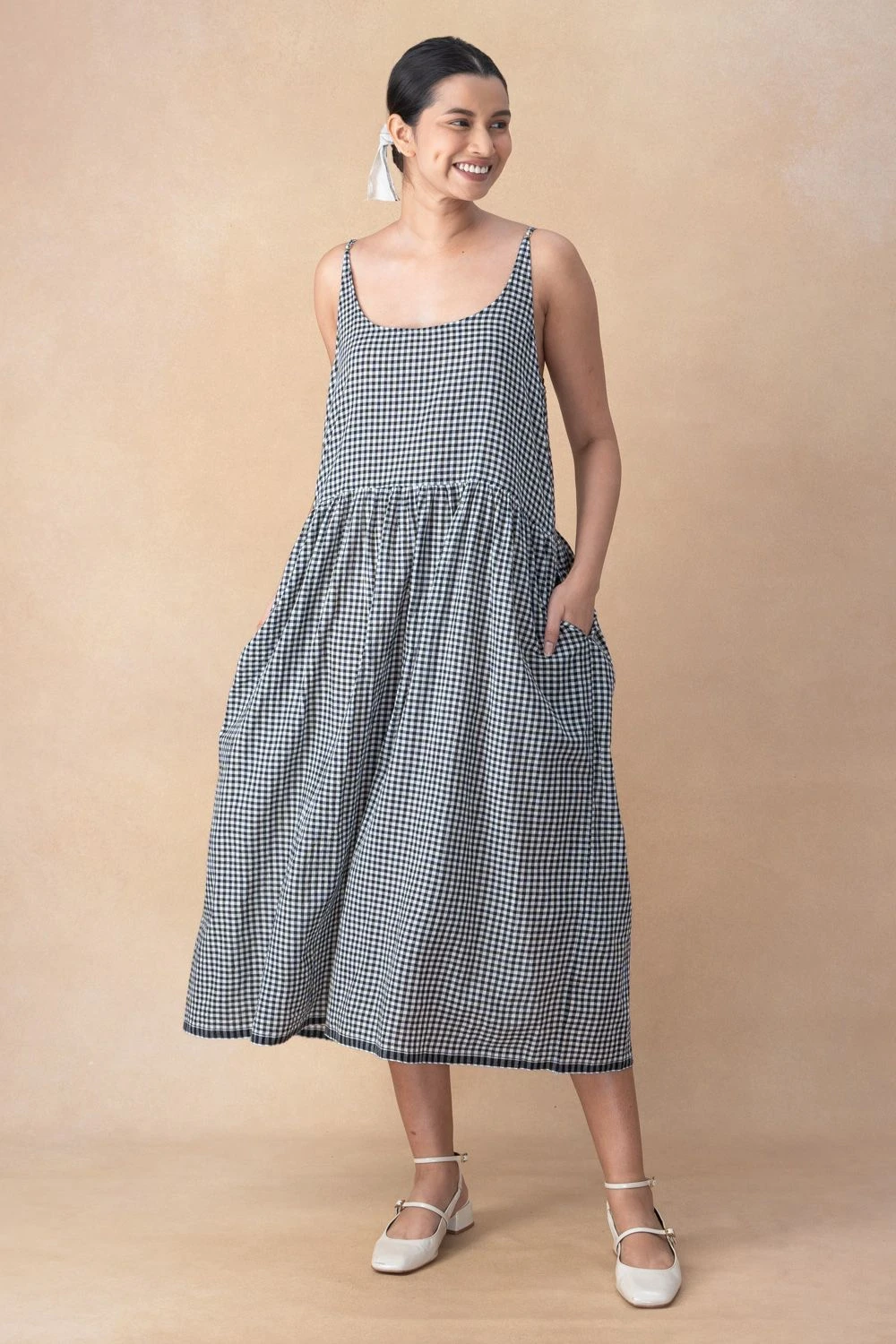 Elevate your style with this black & white checkered dress, a practical choice for the season. Versatile and chic, pair it with layers and elegant oxidized accessories for a sophisticated look.