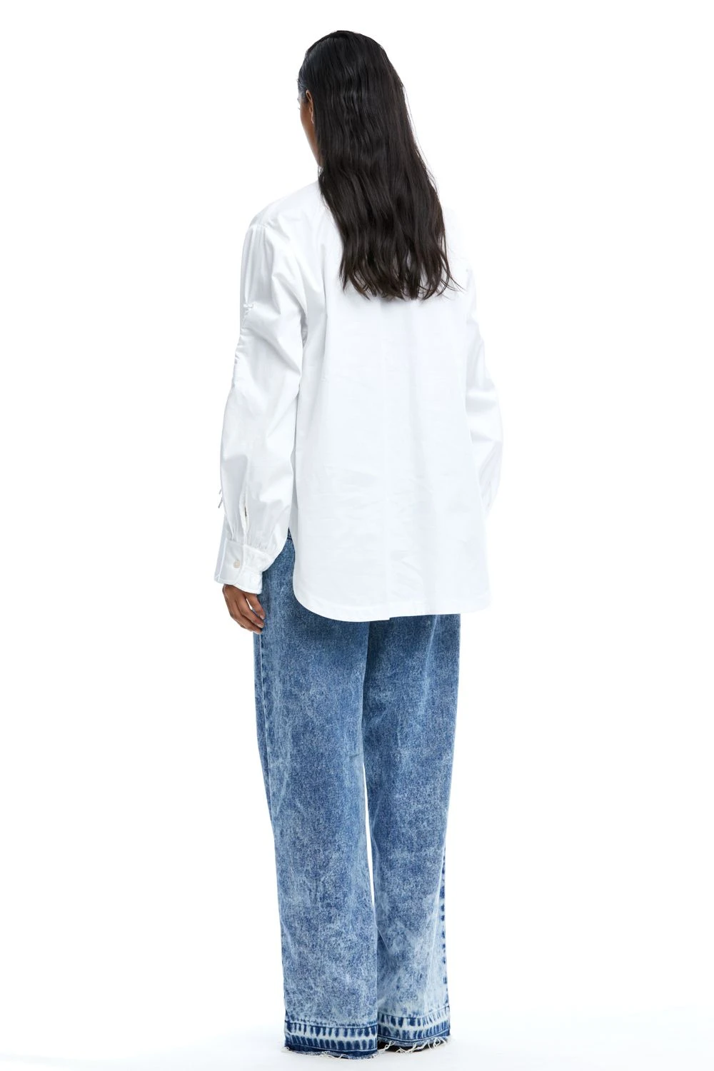 Indulge in luxury with this White Hand-Embellished Shirt. The exquisite contrast stitch detailing adds a refined touch to this elegant piece, making it a timeless addition to your collection.