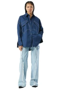 Make a style statement with this two-toned shirt. With its eye-catching design featuring contrasting hues, this shirt exudes contemporary appeal. The patch pockets add a touch of functionality & the contrast top stitch detail adds a unique touch.