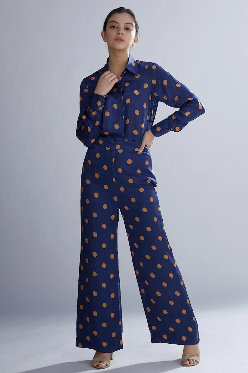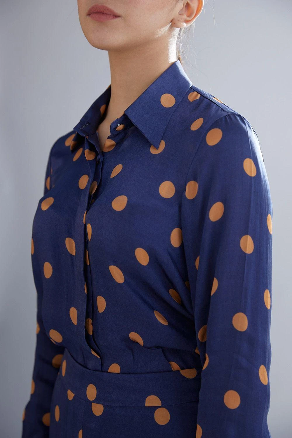 KoAi Blue And Orange Polka Shirt