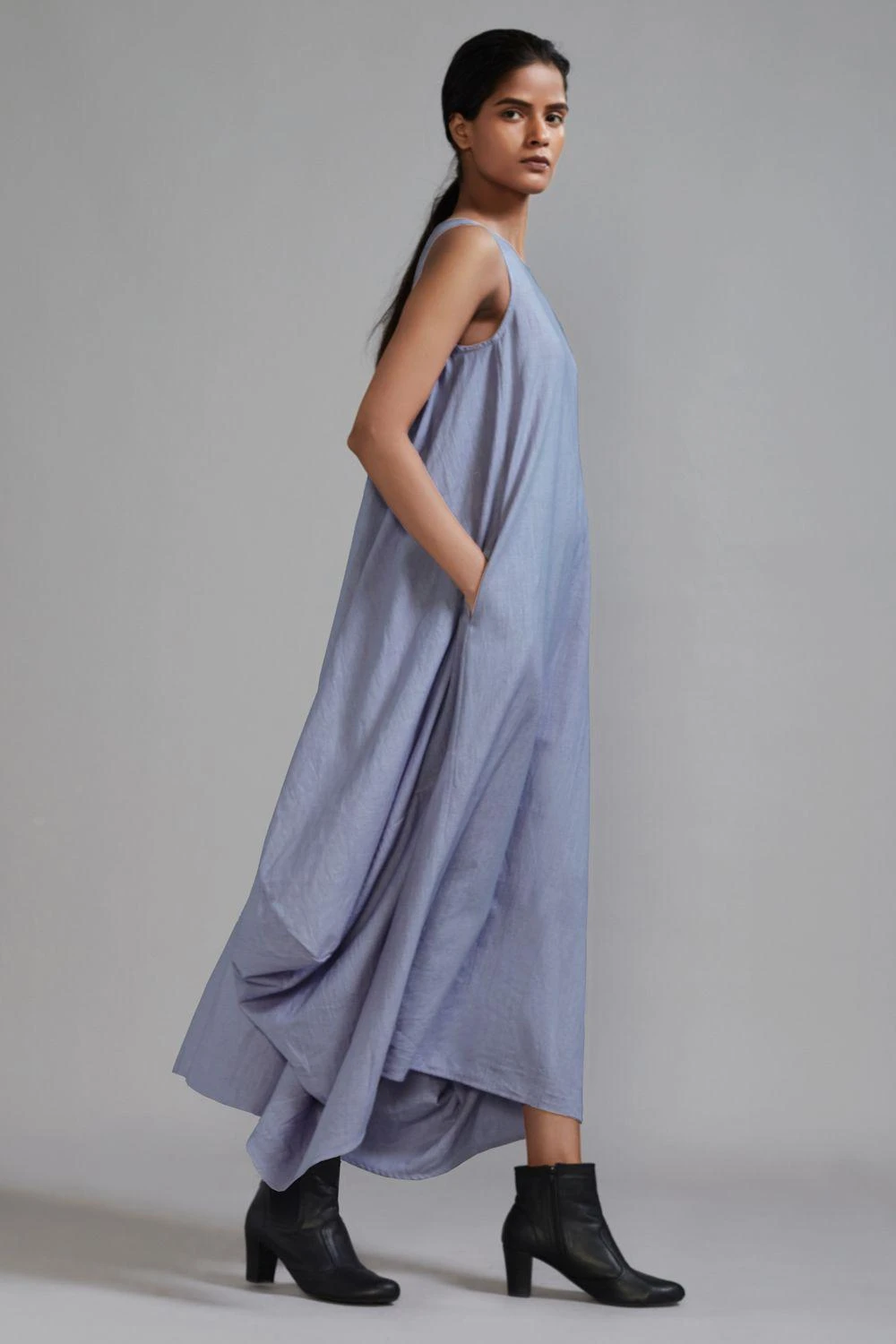 Indulge in understated elegance with this classic side cowl dress. The boatneck adds a touch of sophistication to this timeless piece, perfect for any occasion.