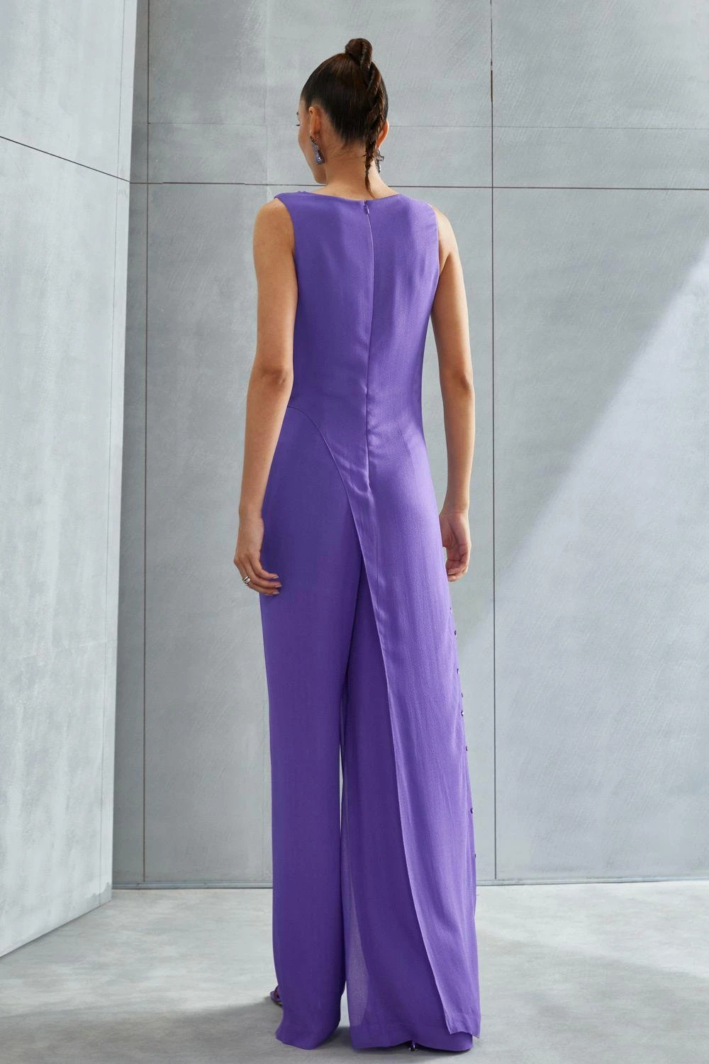 Elevate your style with the Thyme Jumpsuit. Effortlessly chic, the overlap design adds a touch of drama to this modern ensemble, perfect for making a statement. Add a pair of dangler earrings to complete the look.