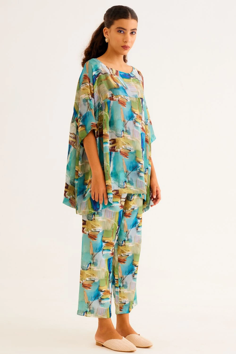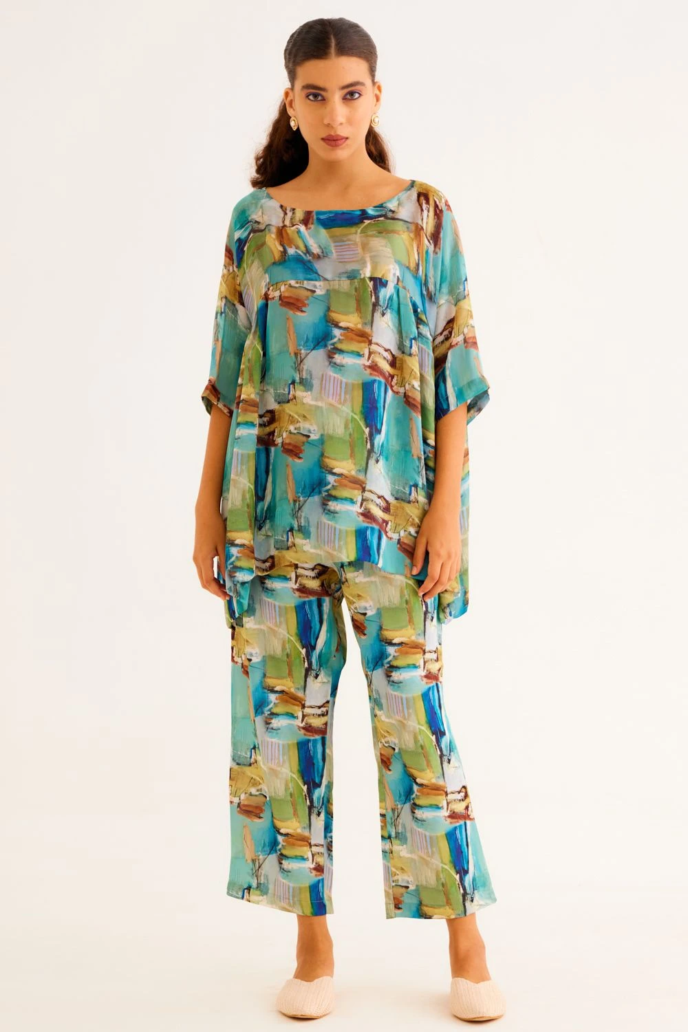 From your work desk to the brunch table & from lounging at home to catching flights, you can always count on this top. Crafted in satin georgette, this top features an abstract print all over.