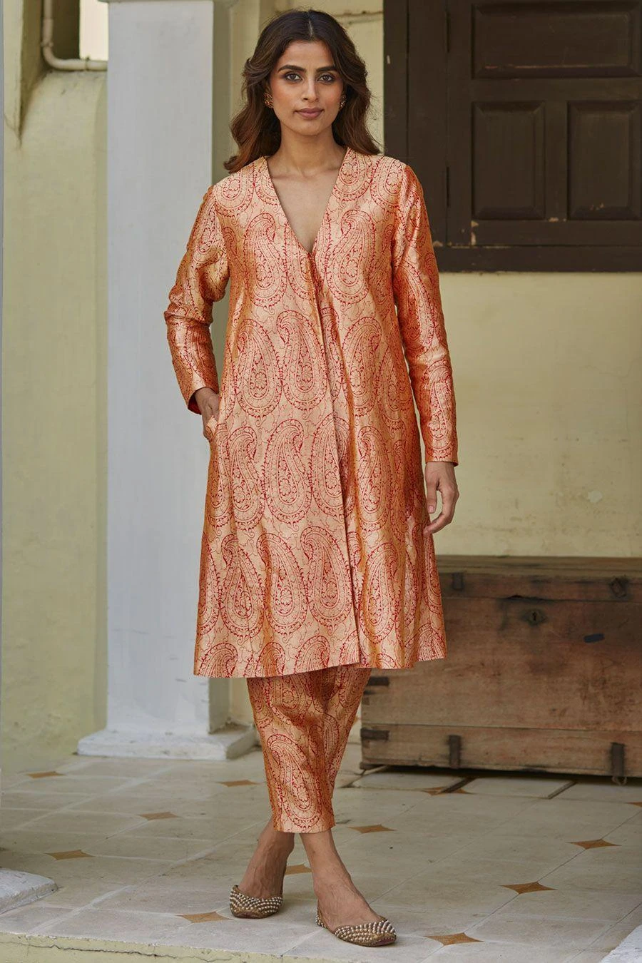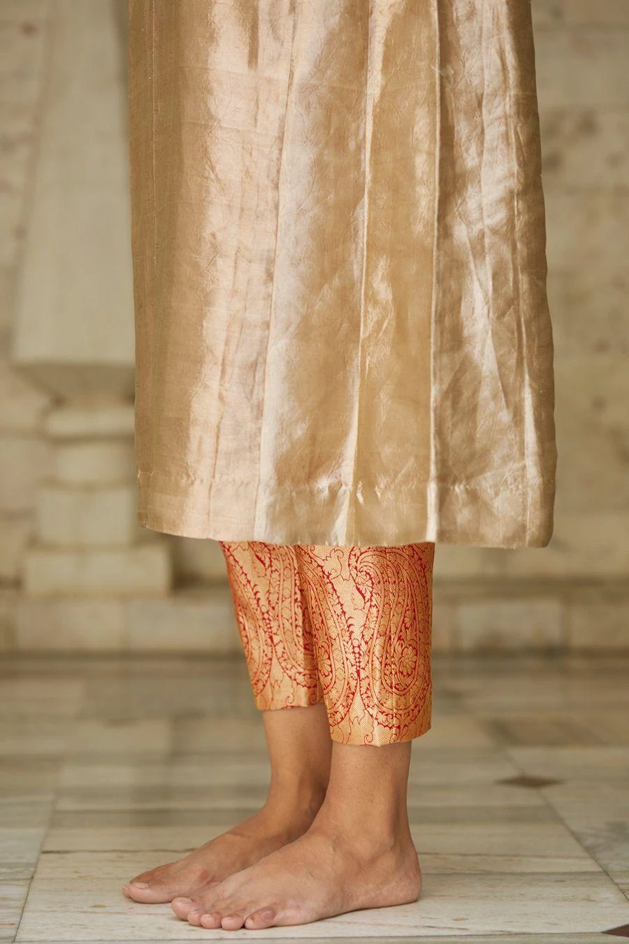 The Boteh Pants are impeccably tailored in heritage brocade handwoven in mulberry silk and gold plated zari by our artisans in Banaras. Pair it with the Red handwoven brocade kurta from the collection to complete the set.