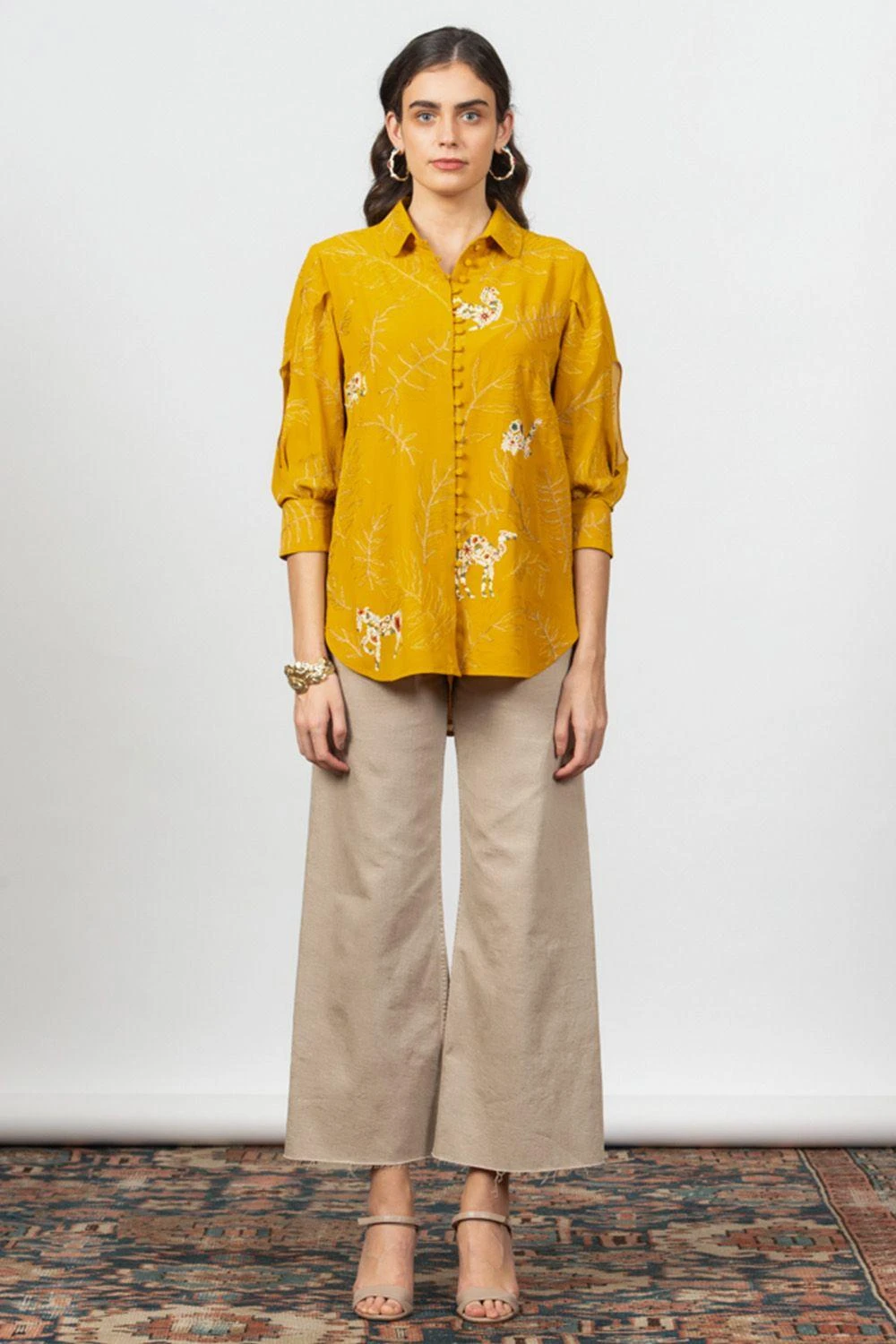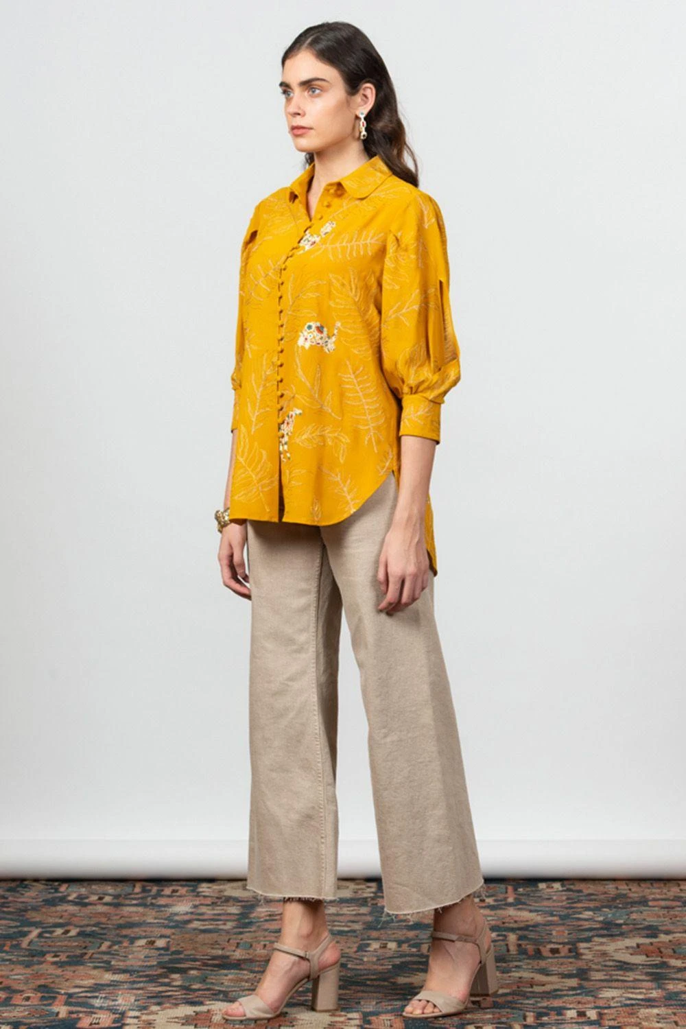 PATINE Yellow Luna Shirt With Shikargah Embroidery