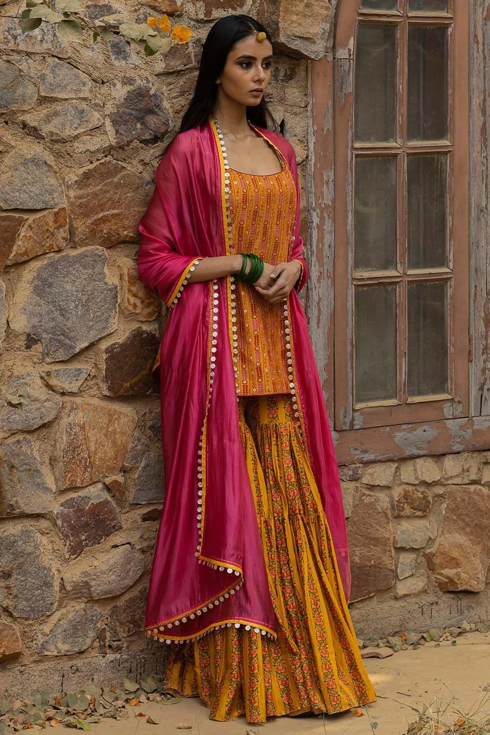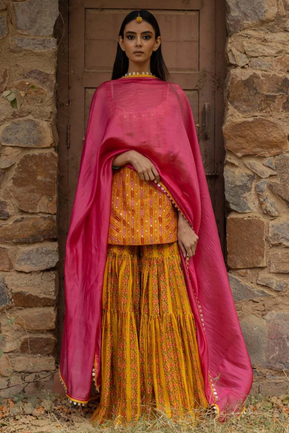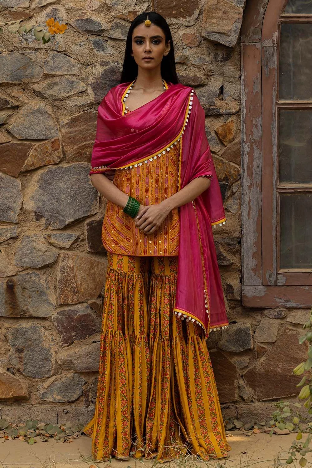 Punit Balana Mustard Printed Kurti & Gharara Set
