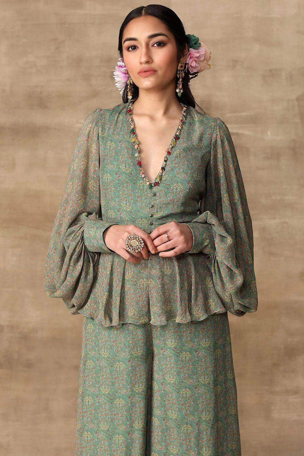 Ridhi Mehra Marcella Turquoise Paisley Printed Jumpsuit