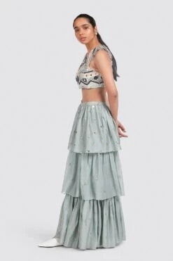 The perfect amalgamation of style and comfort, this gharara set works across occasions. Crafted in handwoven chanderi silk, this set features a hand embellished short kurta paired with a coordinating gharara.