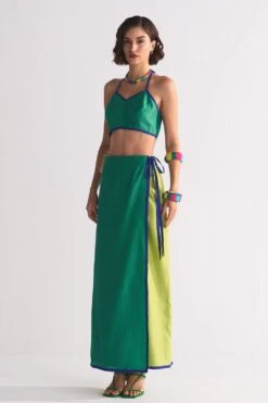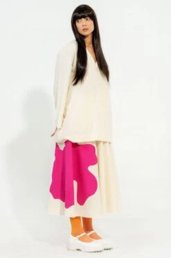 This kalora draped skirt is the perfect holiday piece. It is mindfully cut in vegan silk with a dystopian floral print. The skirt features a front drape with a wide waistband, giving a sharp look. You can style it with a matching shirt.